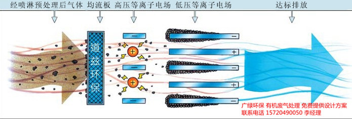 異味氣體從氣體收集系統(tǒng)收集后,有機(jī)廢氣需要進(jìn)行預(yù)處理,除水后進(jìn)入等離子體反應(yīng)區(qū),在高能電子的作用下,使分子受激發(fā),帶電粒子或分子間的化學(xué)鍵被打斷,同時空氣中的水和氧氣在高能電子轟擊下也會產(chǎn)生OH自由基、活性氧等強(qiáng)氧化性物質(zhì),這些強(qiáng)氧化性物質(zhì)也會與異味分子反應(yīng),使其分解,從而促進(jìn)異味消除 。凈化后的氣體經(jīng)排氣筒高空排放[