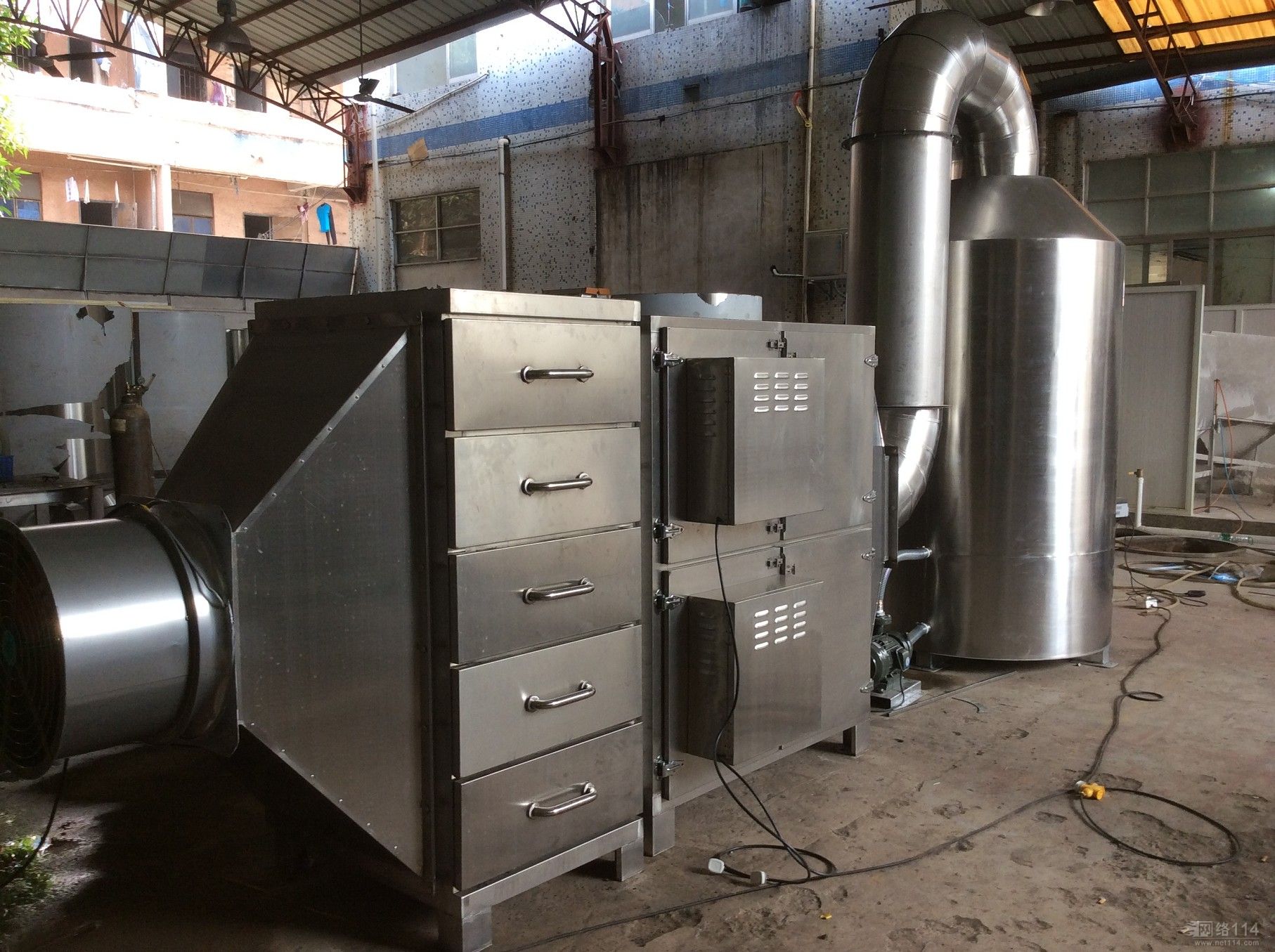 光離復(fù)合催化處理技術(shù)是一種專門去除有毒有害氣體及惡臭氣體的一種裝置。是等離子分解廢氣凈化器+UV光解除臭廢氣凈化器兩種設(shè)備的完美結(jié)合,綜合采用了等離子廢氣凈化器和紫外光觸媒除臭廢氣凈化器兩種設(shè)備的優(yōu)點(diǎn)組合而成,利用等離子分解技術(shù)和UV紫外光解技術(shù)相結(jié)合,對廢氣和臭氣進(jìn)行高效協(xié)同凈化處理!它具有高效率、運(yùn)行成本低、設(shè)備占地面積小,自重輕、無任何機(jī)械動作,無噪音等特點(diǎn),等離子光解一體機(jī)凈化設(shè)備凈化效率在95%以上。是目前市場上更佳的廢氣凈化設(shè)備。下面圖片就是我們光離復(fù)合廢氣處理設(shè)備