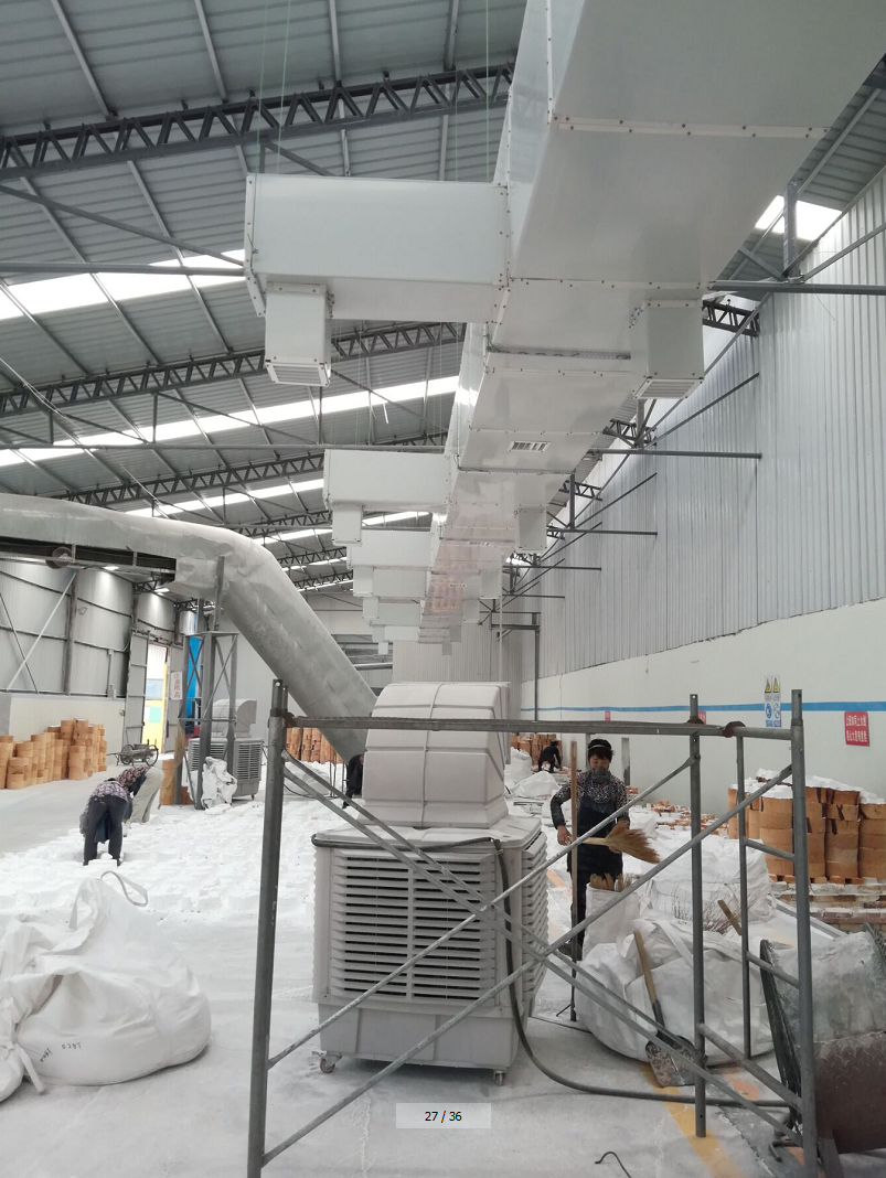 系統(tǒng)整體運(yùn)行后降溫效果明顯,車間空氣明顯改善,溫度也降至30攝氏度以下。機(jī)組為正壓送風(fēng),車間門窗敞開內(nèi)部異味悶熱空氣排出室外,車間內(nèi)部空氣形成了良性循環(huán),空氣清新涼爽。工人在車間內(nèi)不發(fā)悶,有效提高員工的工作效率,受到了客戶的一致好評!