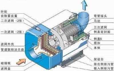 油(煙)霧收集效率高,油霧過濾器對于各種水溶性、油性霧狀物的收集效率高達(dá)99% 。